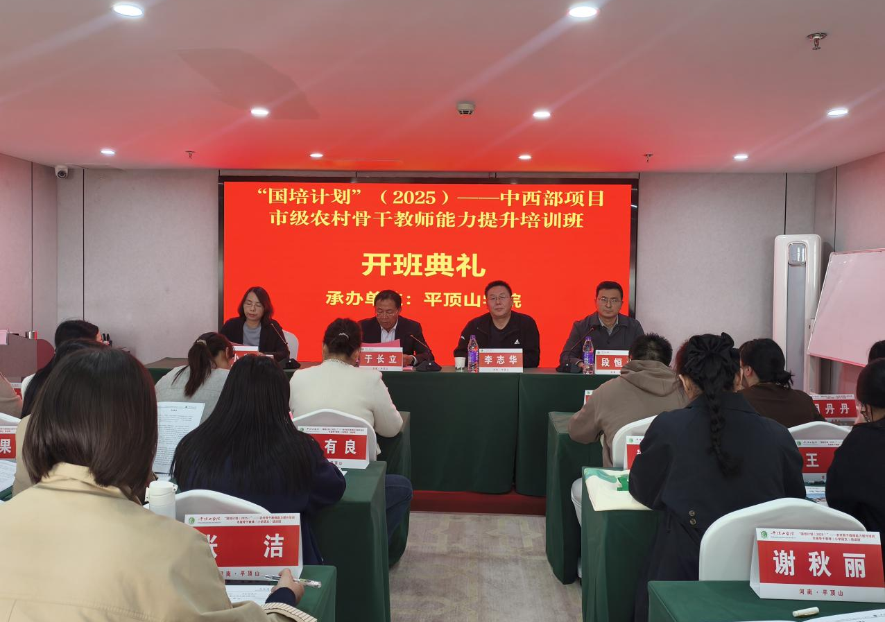 2025年11月2日下午,“国培计划(2025)”——农村骨干教师能力提升培训市级骨干教师(小学语文)培训班开班典礼在仟那美宿酒店会议室顺利举行,平顶山学院副校长于长立,教师教育学院党委书记李志华、院长王小鹤、班主任及全体参训教师出席了会议,此次会议由教师教育学院副院长段恒耀主持。