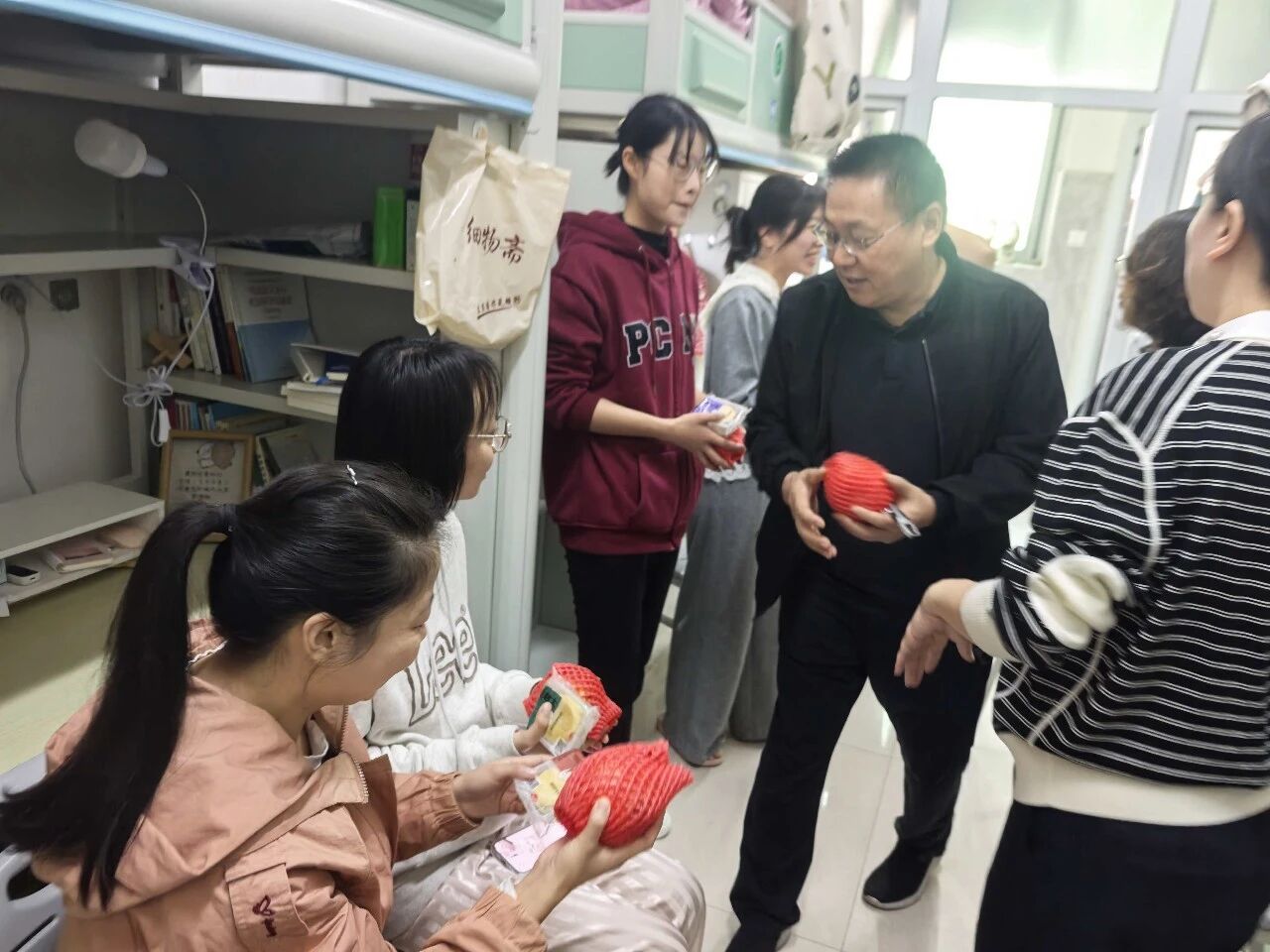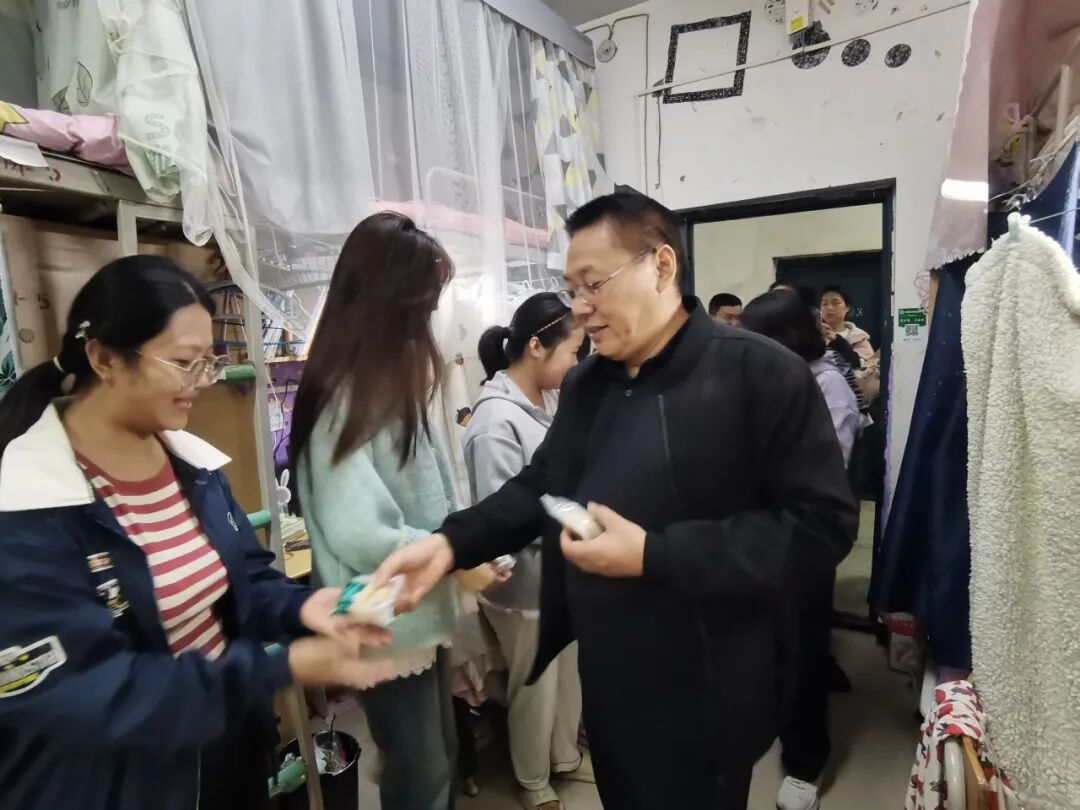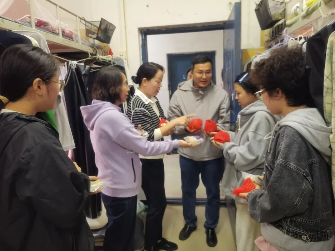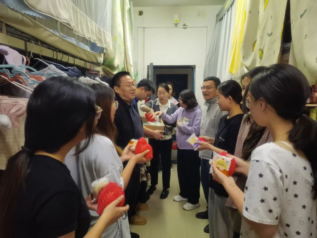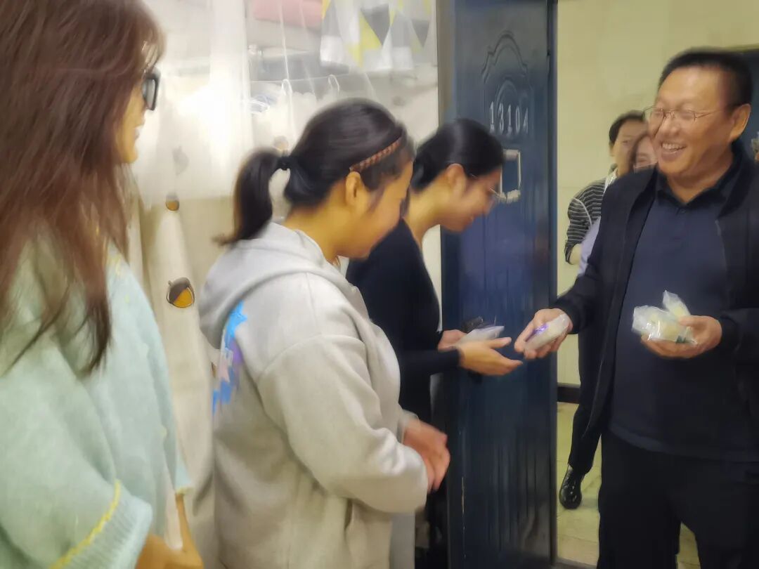 中秋佳节至,温情暖校园。10月5日上午9时,教师教育学院党委书记李志华、院长王小鹤、副书记程芬、副院长段恒耀及各年级辅导员组成慰问团队,带着象征团圆的月饼与寓意红火的石榴,分赴校园各处,为留校的本科生与研究生送去节日的祝福与学院的关怀。