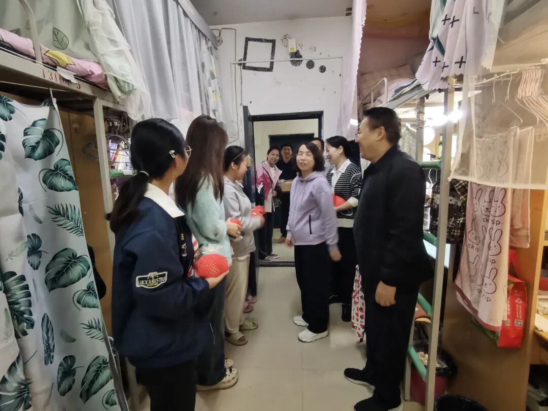 在本科生宿舍与自习室,慰问团队与留校学子亲切交谈。老师们详细询问了同学们留校期间的学习计划、生活安排与饮食情况,叮嘱大家合理规划时间,在专注学业的同时也要注意劳逸结合,遇到生活或学习上的困难及时与辅导员沟通。
