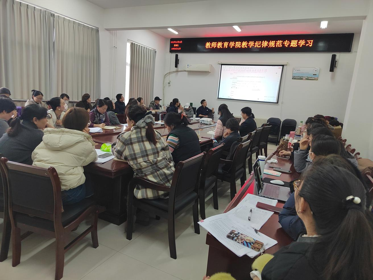 为进一步严明教学纪律,规范教学行为,维护正常教学秩序,强化师德师风建设,12月4日下午,我院在艺术楼226会议室召开专题学习会,组织全体教师集中学习《平顶山学院教学纪律处分办法(试行)》。学院院长王小鹤出席会议并讲话,学习会由副院长王淑宁主持并领学。