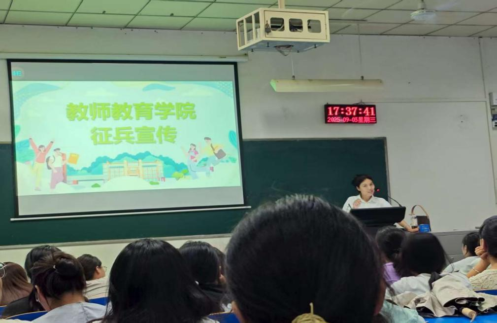 为深入贯彻落实国家征兵工作部署,激发青年学子参军报国的责任感与使命感,2025年11月5日星期三我院于2206教室隆重举办征兵宣传讲座。本次讲座由24级辅导员袁泉老师主讲,24级全体学生齐聚一堂,共同聆听征兵政策解读,感受军营魅力,点燃青春报国热情。