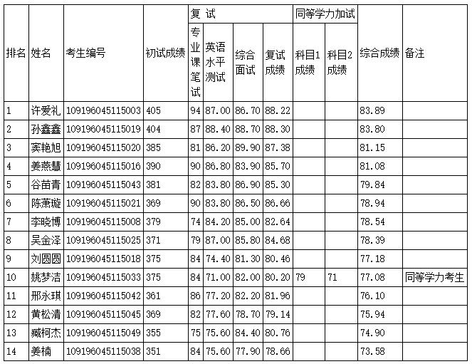 按照我校2026年研究生招生工作安排,我院于3月27日、28日进行了第一志愿复试,现对考生复试综合成绩进行公示: