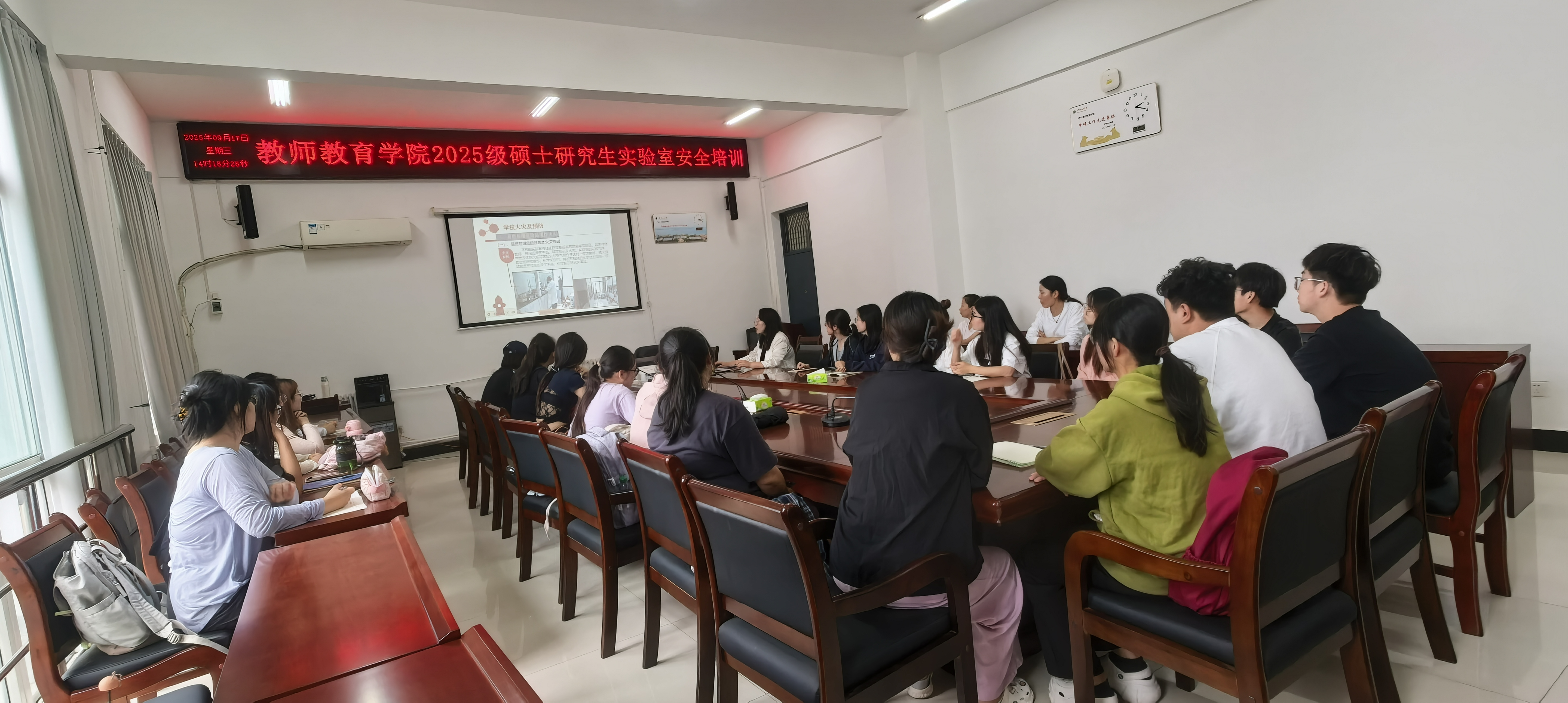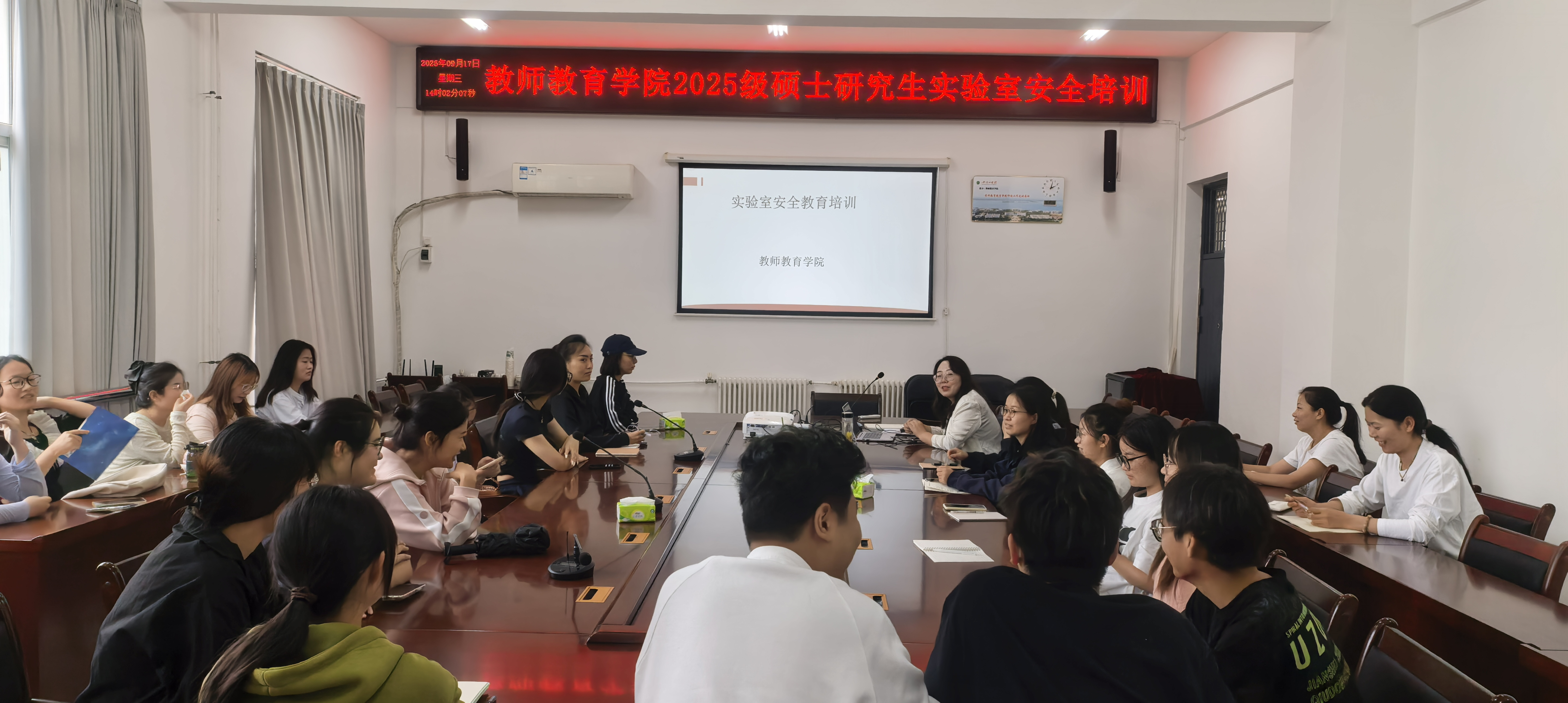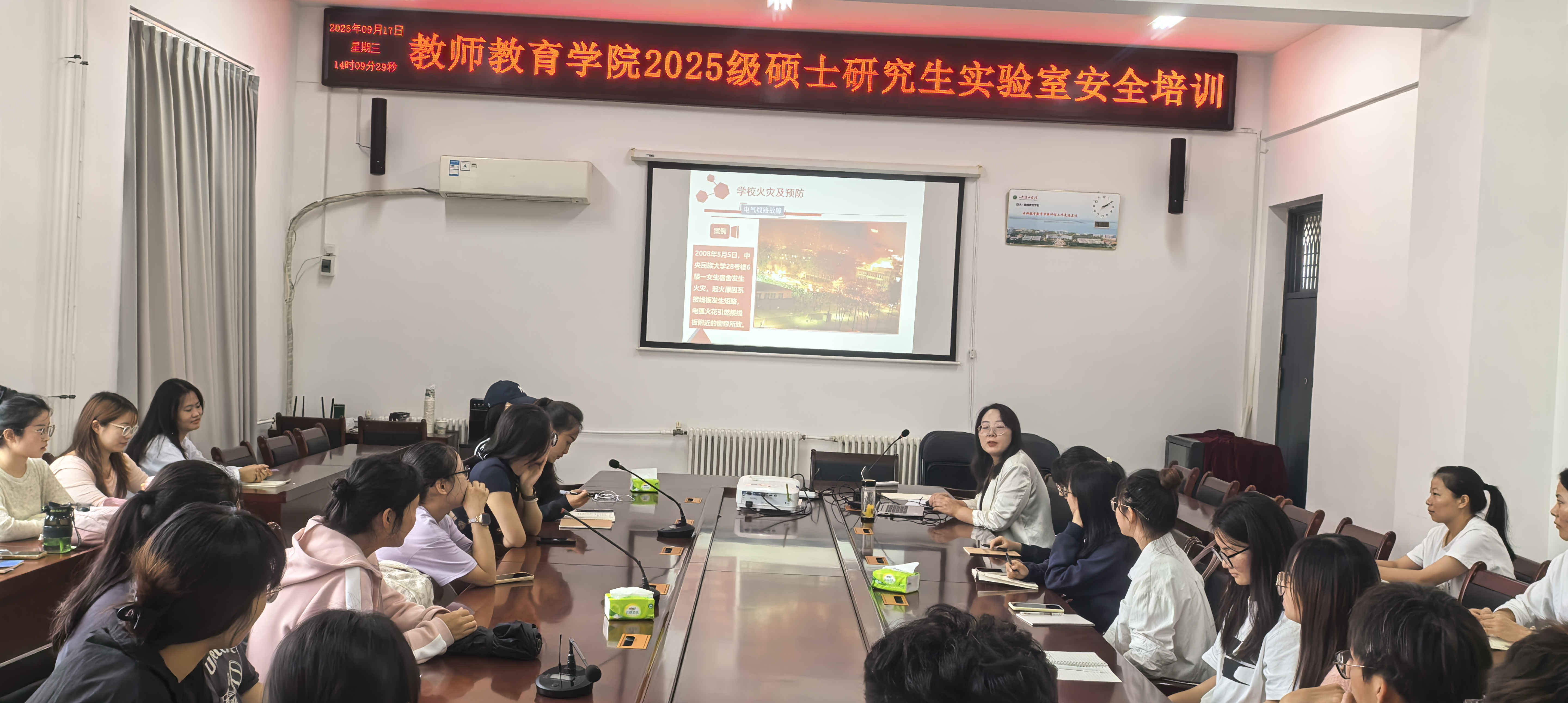 2025年9月17日14点,我院王秋歌副院长在艺术楼A226办公室就实验室安全教育知识及相关事宜为全体2025级研究生作专题培训。